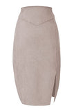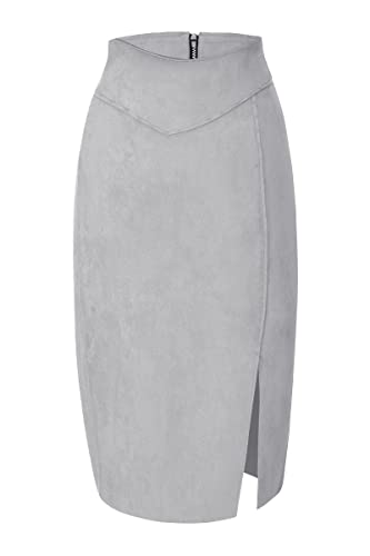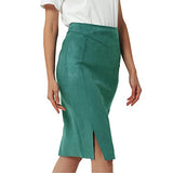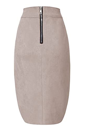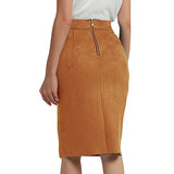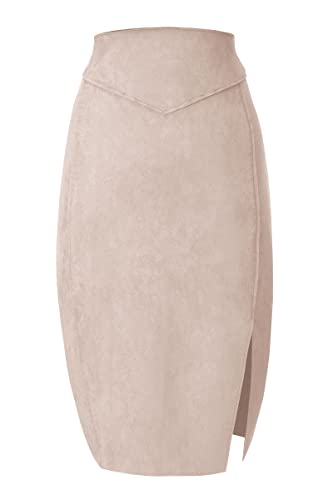 Bellivera Women Faux Suede Leather Pencil Skirt, Spring Fall Casual Midi Skirts Spring and Summer Hip Wrapped Back Split FF21 Camel L