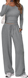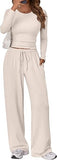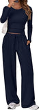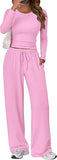 Women's 2 Piece Matching Lounge Set Long Sleeve Slightly Crop Top Wide Leg Pants Casual Sweatsuit