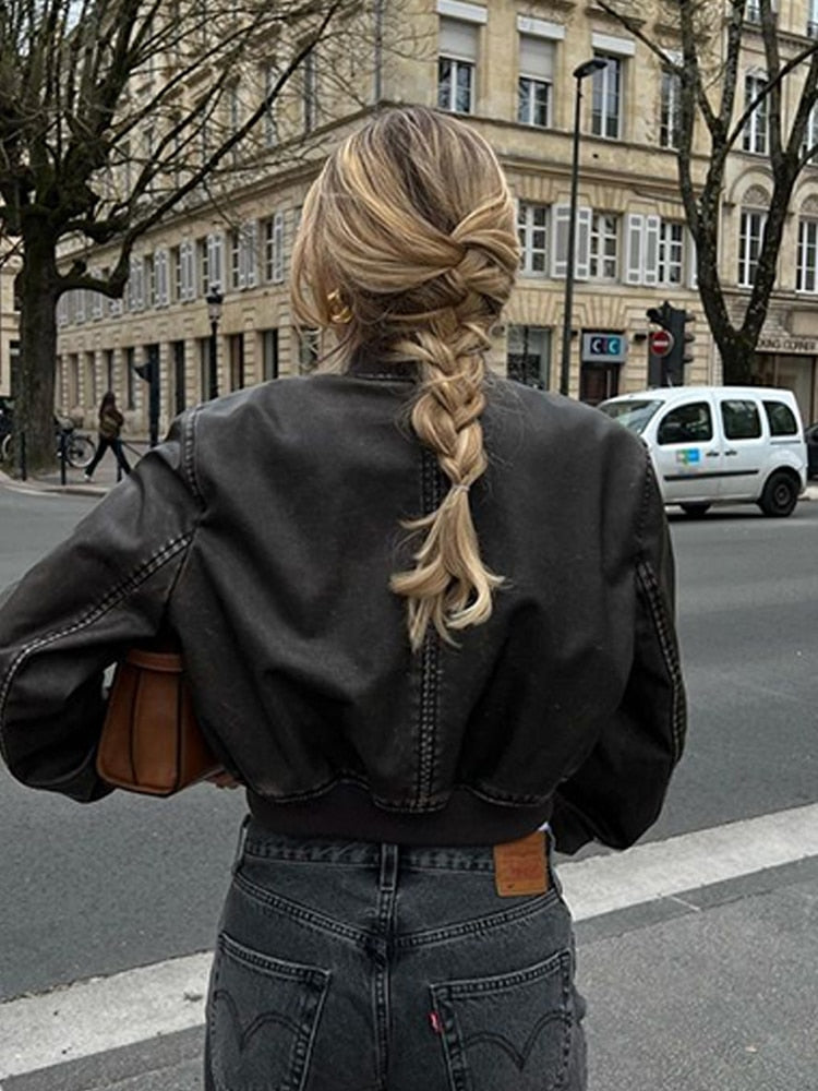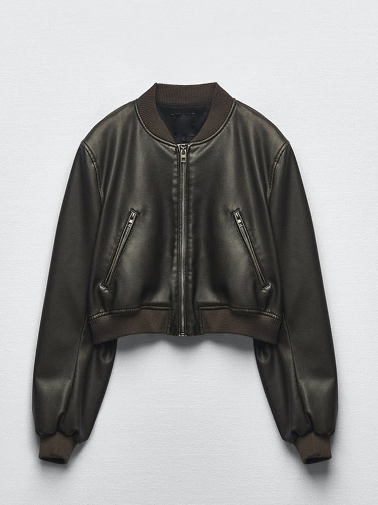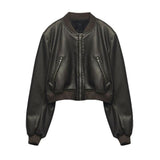 Women Bomber Jacket Chic Cropped Leather Short Coat Female Stand Collar Gothic Racing Jackets Biker Motorcycle Outerwear