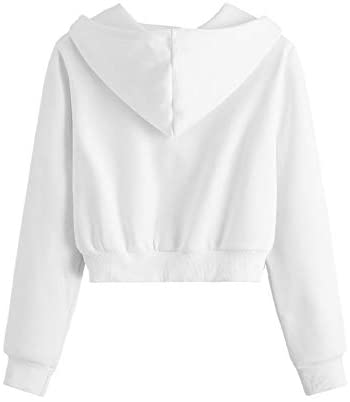 Women's Crop Zip Up Pocket Drawstring Basic Zipper Hooded Sweatshirt