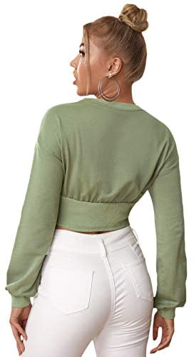 32% Cotton, 60% Polyester, 8% Spandex Fabric: Soft, skinny and comfy. Design: Tight hem, long sleeve, round neck, crew neck, o neck, drop shoulder, solid, plain, elegant slim fit crop pullover for women. Perfect for Spring, Fall, Vocation, Weekend, Casual...