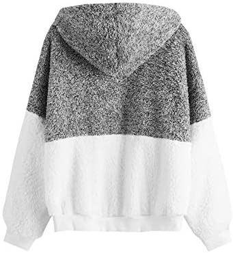100% Polyester. Fabric has no stretch. Pull On closure Fuzzy teddy sweatshirt with front zipper half placket. Long sleeve hooded women color block pullover sweatshirts. Warm, cozy and basic, suitable for spring, fall and winter. Easy to pair with high...