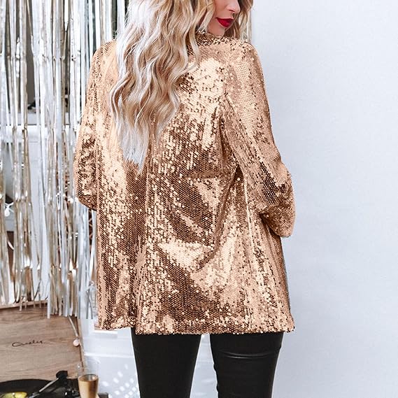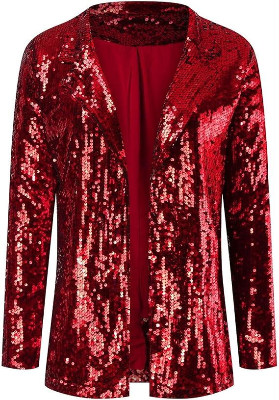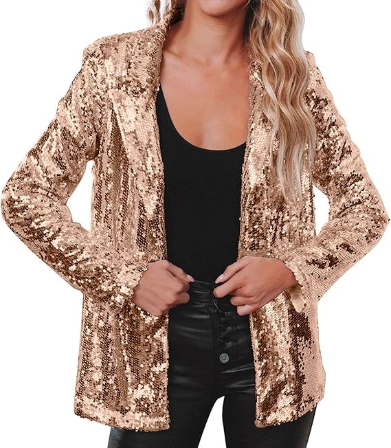 Women's Sequin Jacket Long Sleeve Open Front Blazer Glitter Sparkly Coat Party Casual Cardigan