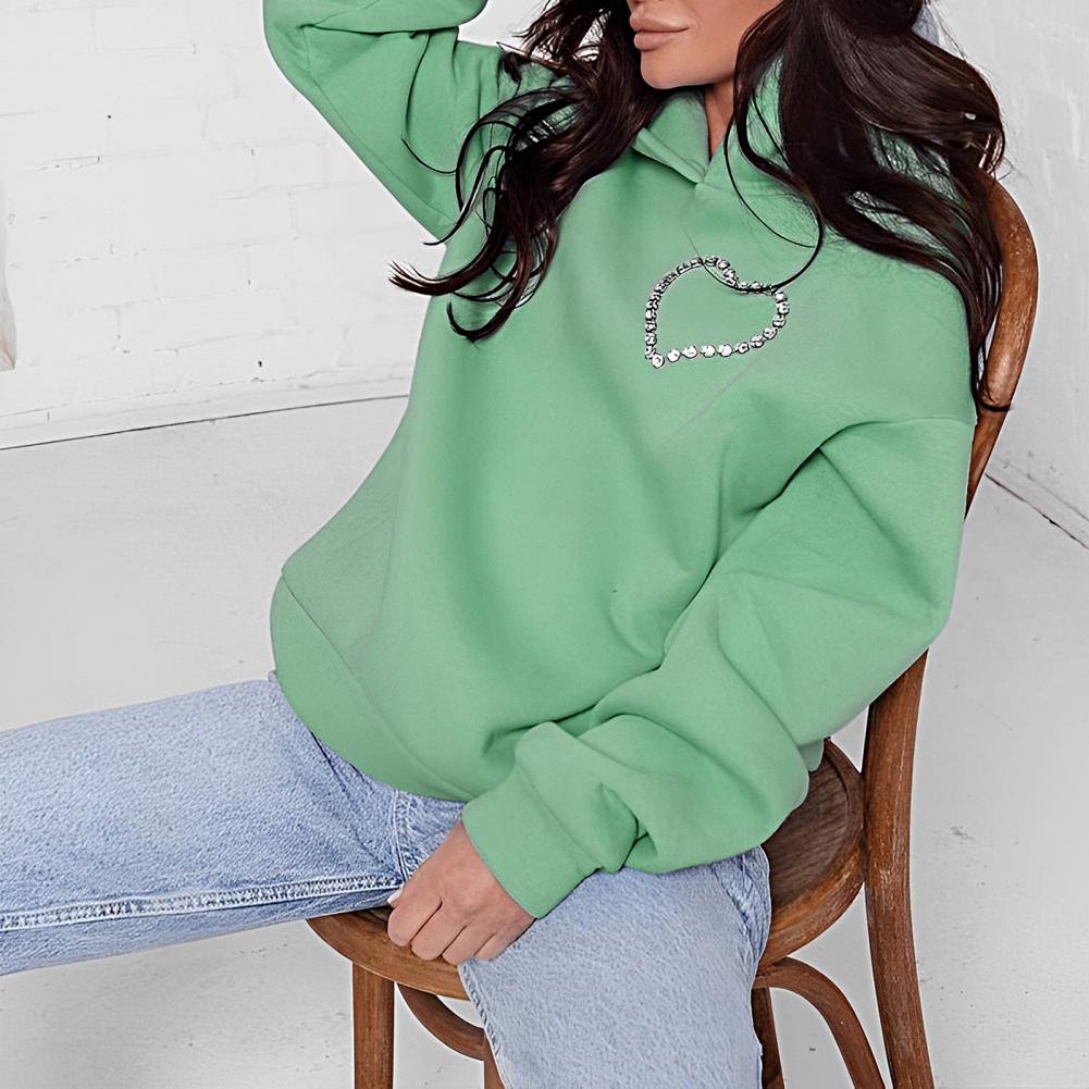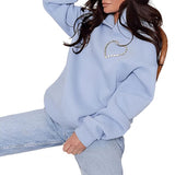 Women Hoodie Heart Shape Hooded Backless Hollow Out Rhinestone Keep Warm Pullover Solid Color Spring Hoodie for Club