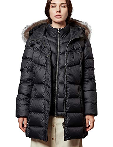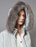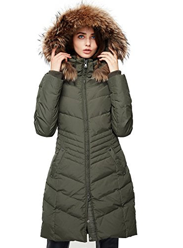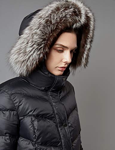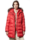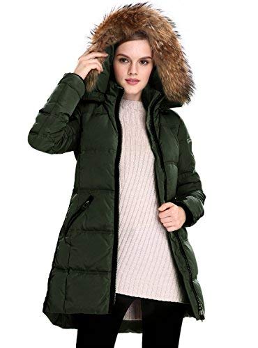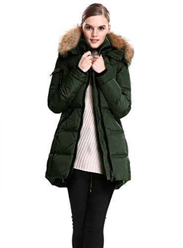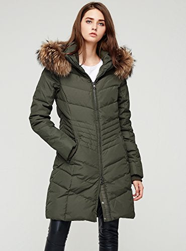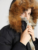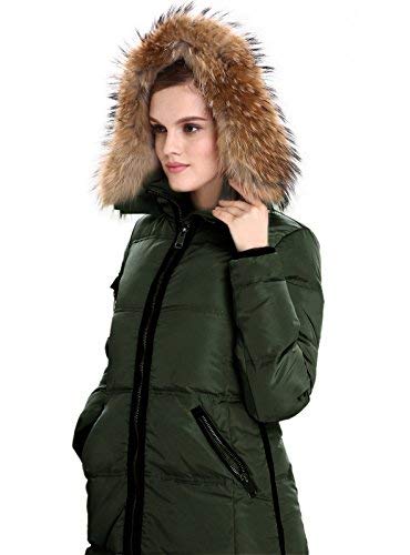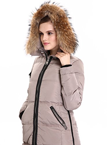 Women's Down Coat With Real Raccoon Fur Hooded Parka Jacket (Large, Wine)
