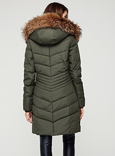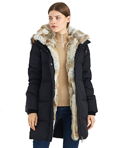 - Real raccoon fur hooded and rabbit fur collar to down(removable),Zipper front with snap-button overlay/Long sleeves with storm cuffs