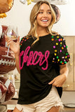 BiBi Metallic Letter Spangle Raglan Puff Sleeve Top