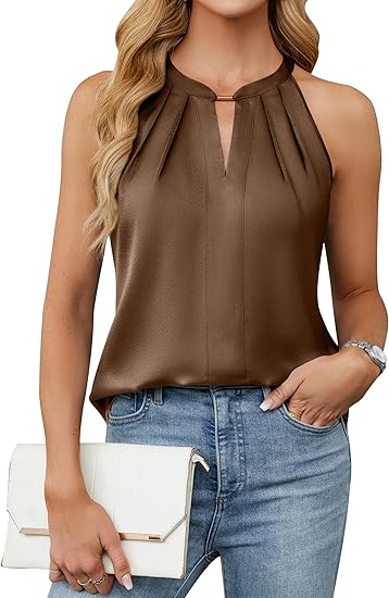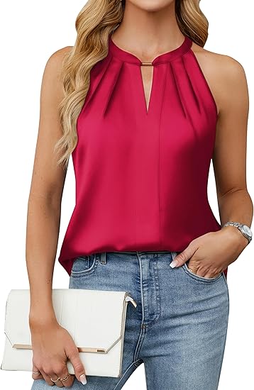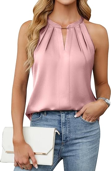 - PLEATED DETAIL: The blouses for women dressy casual feature a keyhole design, metal detail and pleated details for a chic and modern look, give the tanks a delicate and chic look, making it a standout piece for fashionable outfits.