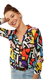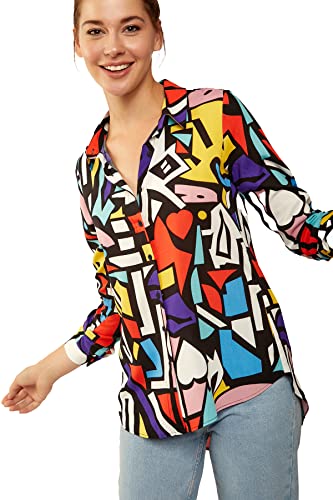 Blouses for Women Fashion, Casual Long Sleeve Button Down Shirts Tops(Geometric Print)