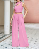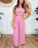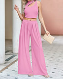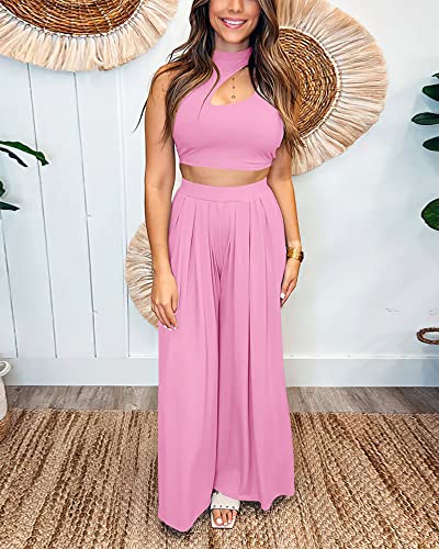 - CASUAL WOMEN 2 PIECE OUTFITS: This Casual Outfit Sets Includes A Sleeveless Crop Tops And Wide-Leg Pants. The Slim Fit Tops With Cutout Chest Can Frame Your Charming Shape. Pair With Loose Wide-Leg Pants To Modify Your Legs, Make You More Feminine