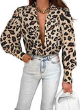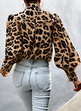 Women's Leopard Print Button Down Shirt - Long Sleeve, V Neck, Business Casual