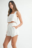 This sleeveless crop top and shorts set is perfect for staying cool and stylish during warm weather. The simple yet trendy design makes it easy to mix and match with other pieces in your wardrobe. Stay comfortable and chic all day long in this versatile ensemble.