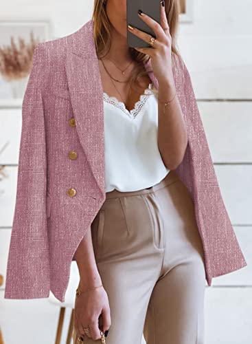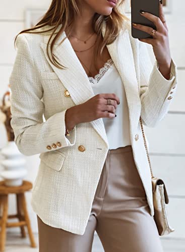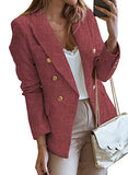 Blazer Jackets for Women Tweed Double Breasted Elegant Lightweight Cardigan Outwear Gray S