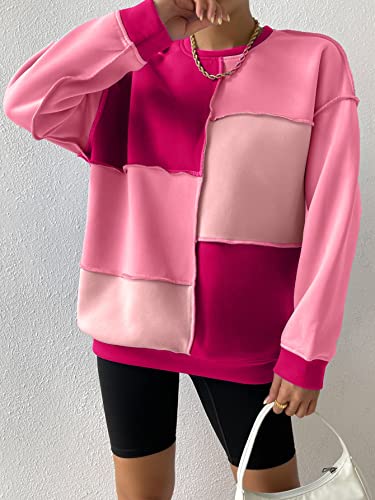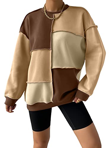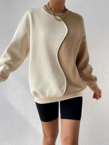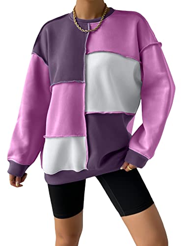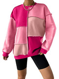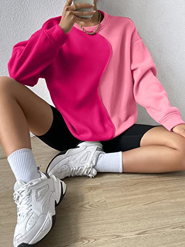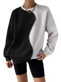 Women's Color Block Crew Neck Oversized Sweatshirt Drop Shoulder Casual Pullover