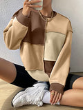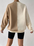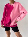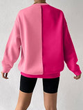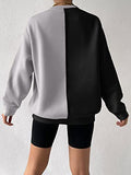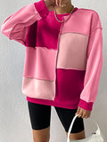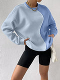 - Color Block Crew Neck Drop Shoulder Long Sleeve Loose Fit Sweatshirt