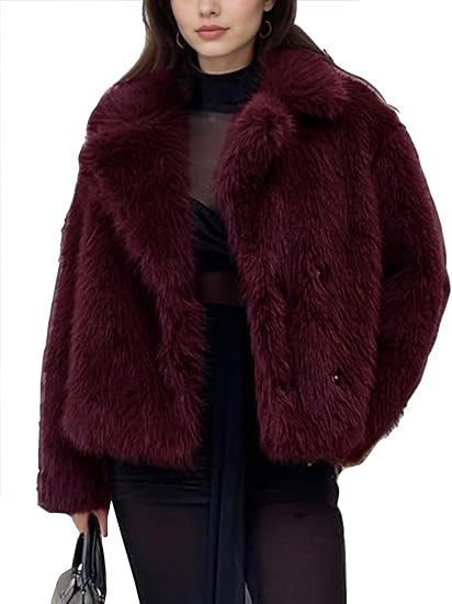 • Features: fuzzy faux fur coat outwear, long sleeve, lapel collar fluffy jacket for women, short shaggy parka, full lined, open front design, snap button closure, easy to put on or off, two side hidden handy pockets, well-made and trendy outfits for your winter.