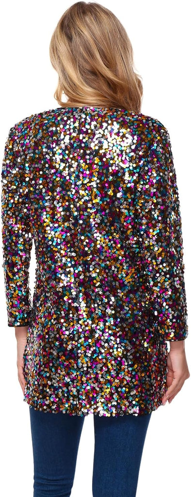 • Features:Women's sequin cardigan jacket with sparkling sequins,blazer silhouette, long sleeves, open closure, fully lined, hip length. Sparkling sequin jacket will make you shine at night and stand out from the crowd.